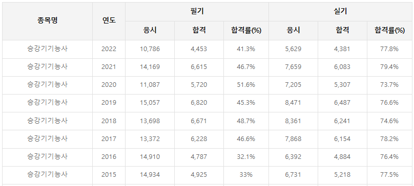 - 승강기기능사 합격률